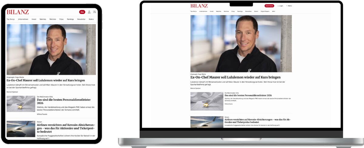 BILANZ ist das führende Schweizer Wirtschaftsmedium mit exklusiven Analysen, Zugang zu Führungspersönlichkeiten und tiefgründigen Recherchen. Wer sich für Leadership interessiert und sich für Lifestyle und Luxus begeistern kann, findet auf BILANZ täglich neue Inspiration. Seit 45 Jahren steht BILANZ für unabhängigen Wirtschaftsjournalismus aus erster Hand. Unsere erfahrene Redaktion verfügt über Kontakte zu Entscheidungsträgerinnen und -trägern und ermöglicht dadurch einzigartige Einblicke in die Schweizer Wirtschaftswelt. Mit einer crossmedialen Reichweite 131’000 erreicht BILANZ sein Publikum täglich Web, Social Media, Events und Print.